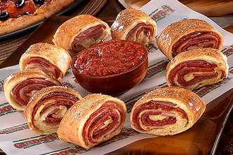 Our homemade dough wrapped in a layer of pepperoni, ham, salami & provolone cheese. Baked to a golden brown & brushed with a layer of butter & topped with a dash of oregano & parmesan cheese. Served with your choice of dipping sauce